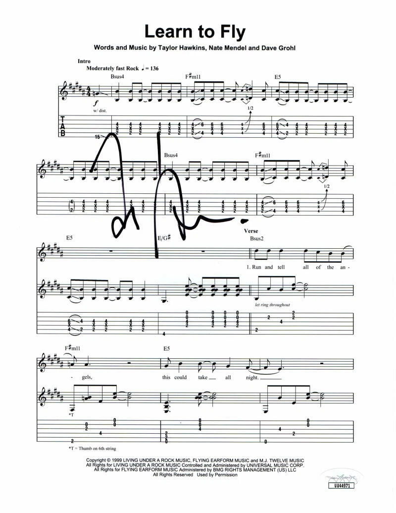 TAYLOR HAWKINS SIGNED AUTOGRAPH “LEARN TO FLY” SHEET MUSIC – FOO FIGHTERS W/ JSA COLLECTIBLE MEMORABILIA