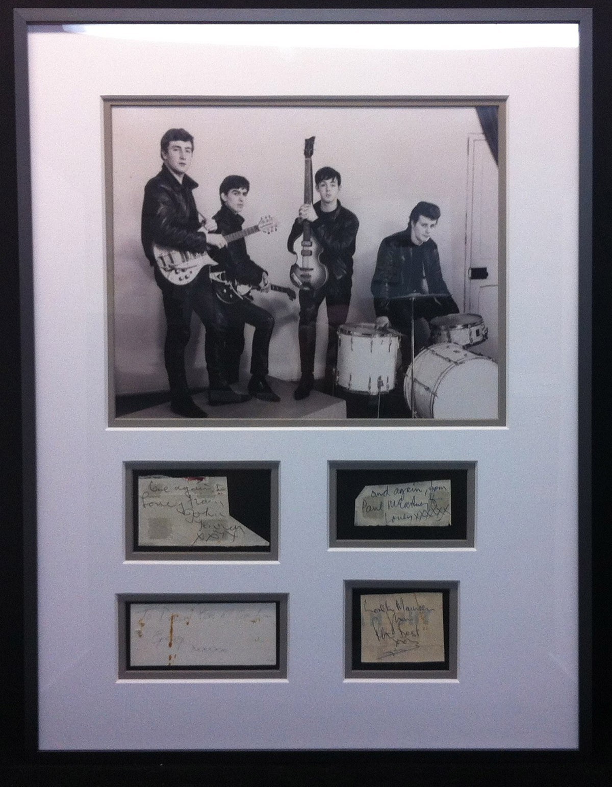 THE BEATLES 1962 VINTAGE SIGNED 19.5″X25.75″ DISPLAY JOHN PAUL GEORGE PETE COLLECTIBLE MEMORABILIA