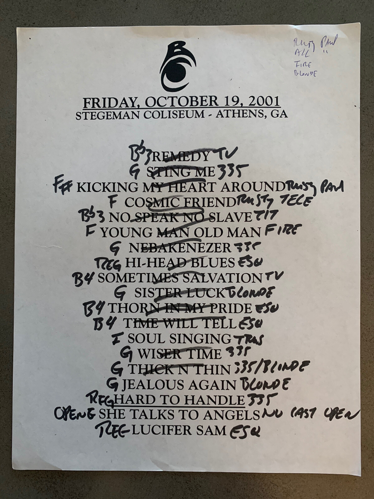 THE BLACK CROWES 10-19-01 TOUR CONCERT USED SET LIST W/ NOTES ATHENS, GA COLLECTIBLE MEMORABILIA
