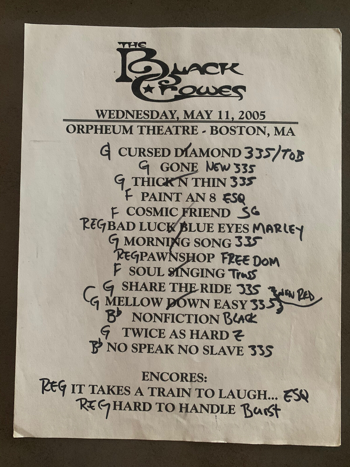 THE BLACK CROWES 5-11-05 TOUR CONCERT USED SET LIST W/ NOTES BOSTON, MA COLLECTIBLE MEMORABILIA