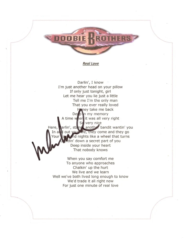 THE DOOBIE BROTHERS MICHAEL MCDONALD SIGNED REAL LOVE LYRIC SHEET COLLECTIBLE MEMORABILIA