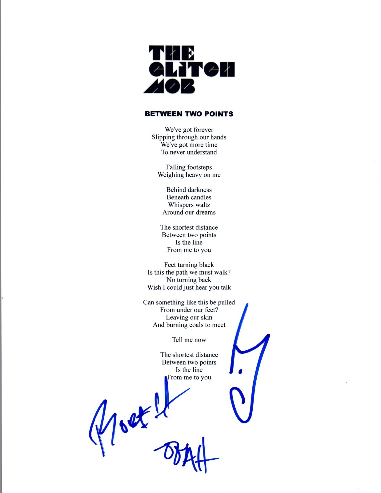 THE GLITCH MOB SIGNED AUTOGRAPHED “BETWEEN TWO POINTS” LYRIC SHEET COA VD COLLECTIBLE MEMORABILIA