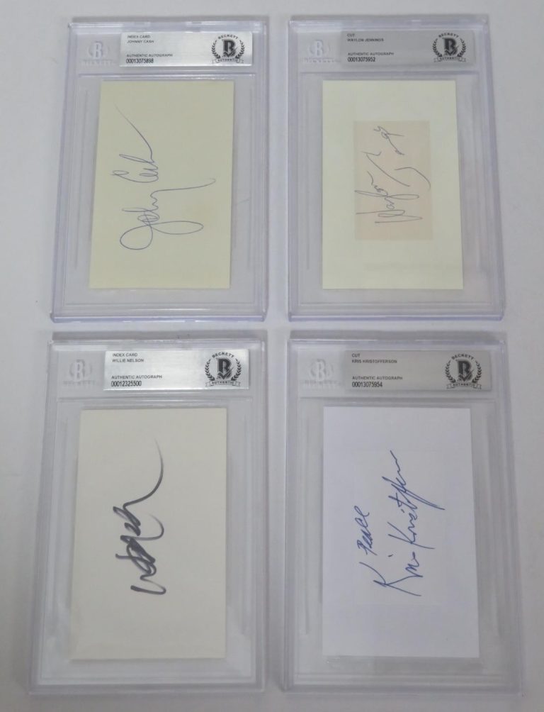 THE HIGHWAYMEN SIGNED AUTOGRAPH AUTO SLAB SET X 4 JOHNNY CASH, WAYLON + BAS JSA COLLECTIBLE MEMORABILIA