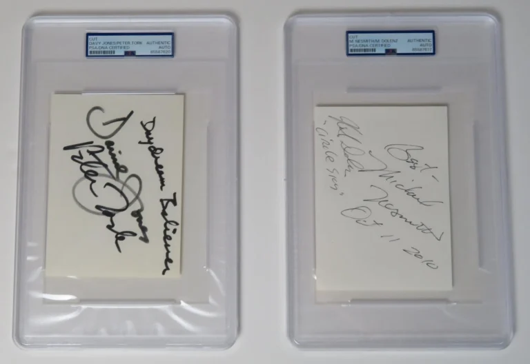 THE MONKEES SIGNED AUTOGRAPH AUTO INDEX CARD CUT PAGE SLAB BY 4 PSA JSA COLLECTIBLE MEMORABILIA