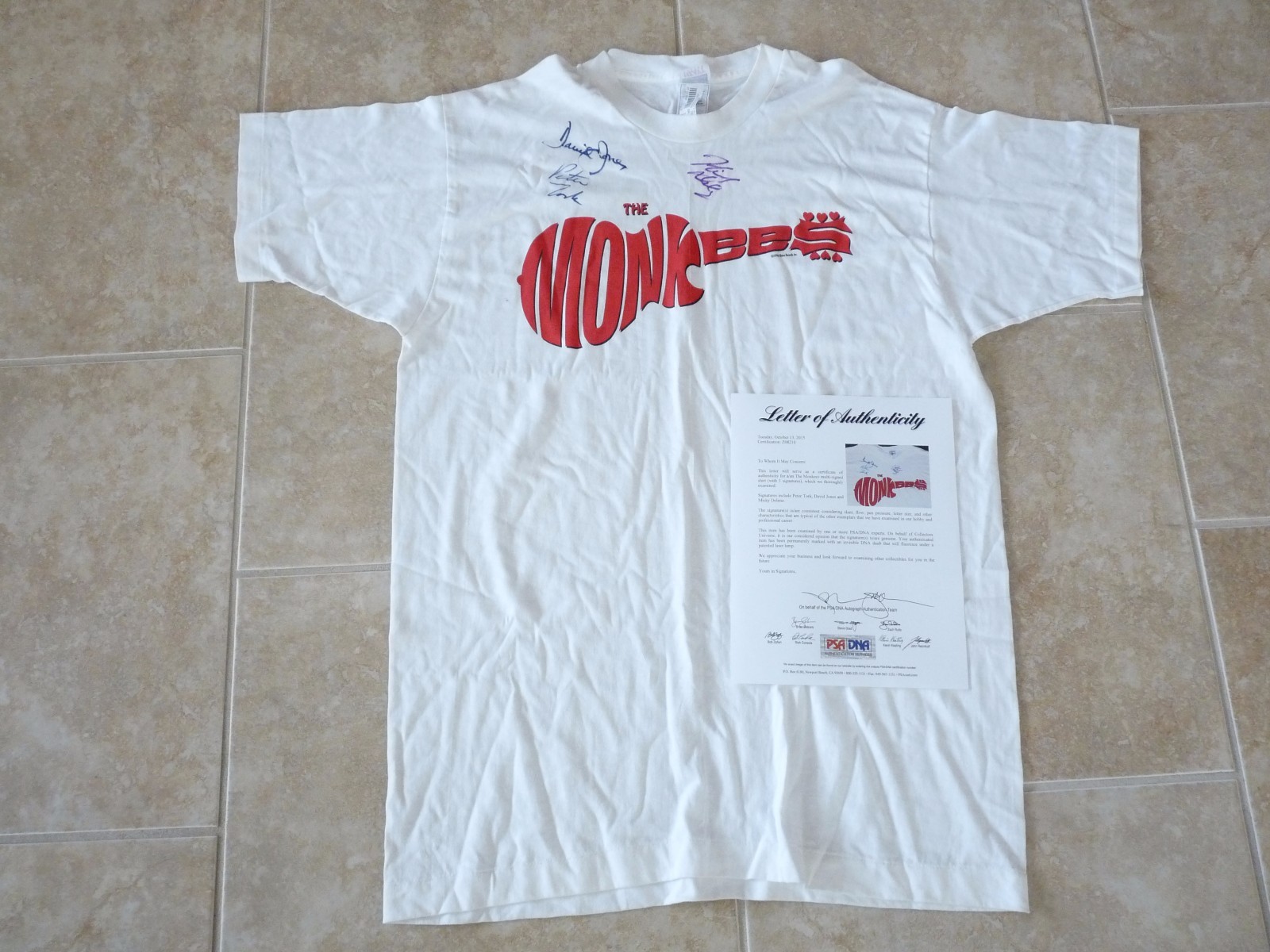 THE MONKEES SIGNED AUTOGRAPHED NEW XL T SHIRT TORK JONES DOLENZ PSA CERTIFIED COLLECTIBLE MEMORABILIA