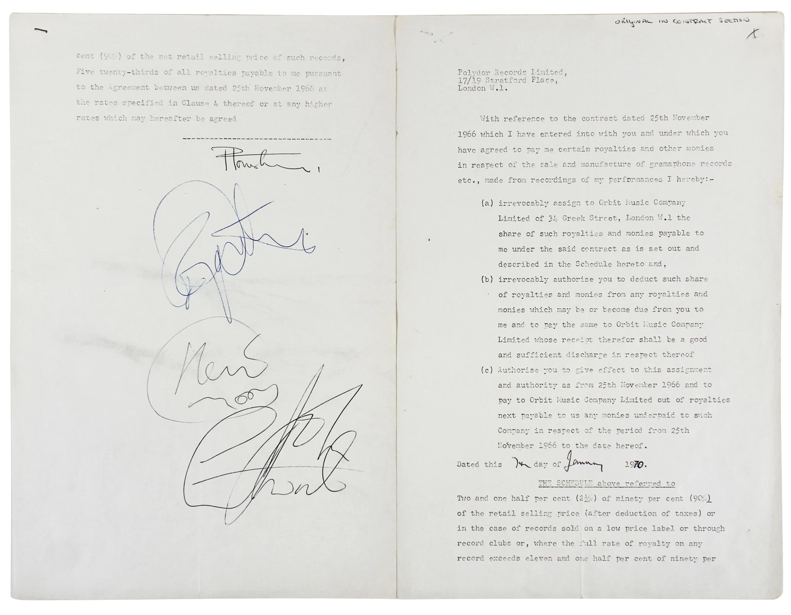 THE WHO (4) TOWNSHEND, MOON, DALTREY & ENTWISTLE SIGNED CONTRACT ADDENDUM JSA COLLECTIBLE MEMORABILIA