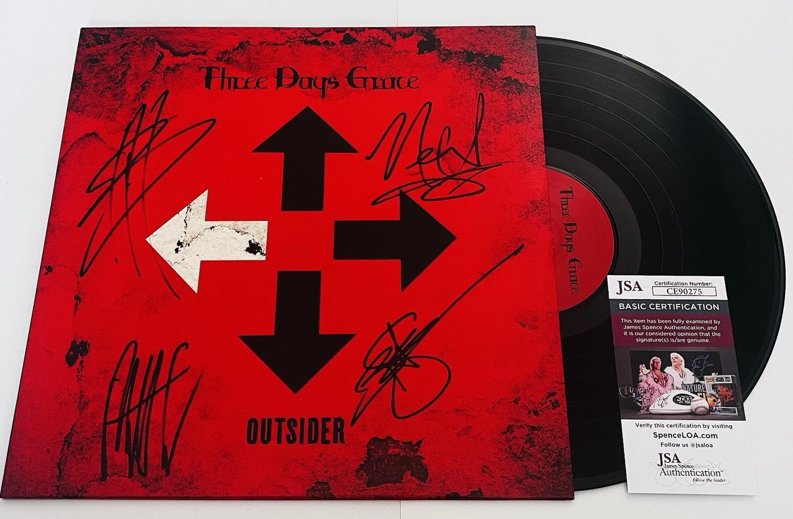 THREE DAYS GRACE SIGNED OUTSIDER LP VINYL RECORD ALBUM MATT BRAD NEIL BARRY JSA COLLECTIBLE MEMORABILIA
