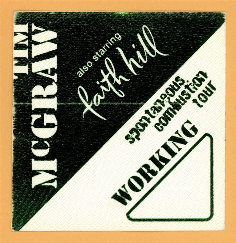 TIM MCGRAW 1996 W/ FAITH HILL CONCERT TOUR WORKING BACKSTAGE PASS COLLECTIBLE MEMORABILIA