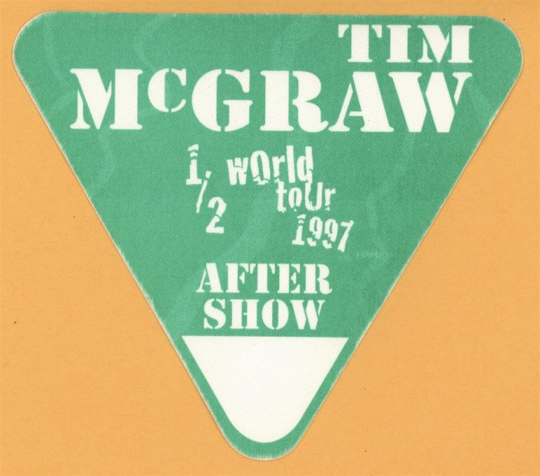 TIM MCGRAW 1997 1/2 WORLD CONCERT TOUR AFTER SHOW BACKSTAGE PASS COLLECTIBLE MEMORABILIA