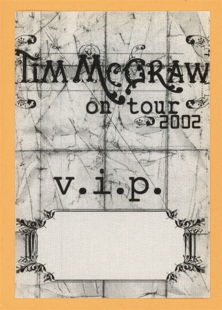 TIM MCGRAW 2002 SET THIS CIRCUS DOWN CONCERT TOUR VIP BACKSTAGE PASS COLLECTIBLE MEMORABILIA