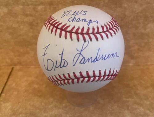 TITO LANDRUM 82 WS CHAMPS SIGNED AUTOGRAPHED M.L. BASEBALL BECKETT AUTH COLLECTIBLE MEMORABILIA