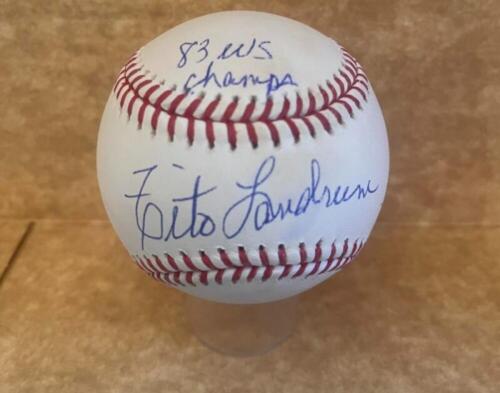 TITO LANDRUM 83 WS CHAMPS SIGNED AUTOGRAPHED M.L. BASEBALL BECKETT AUTH COLLECTIBLE MEMORABILIA