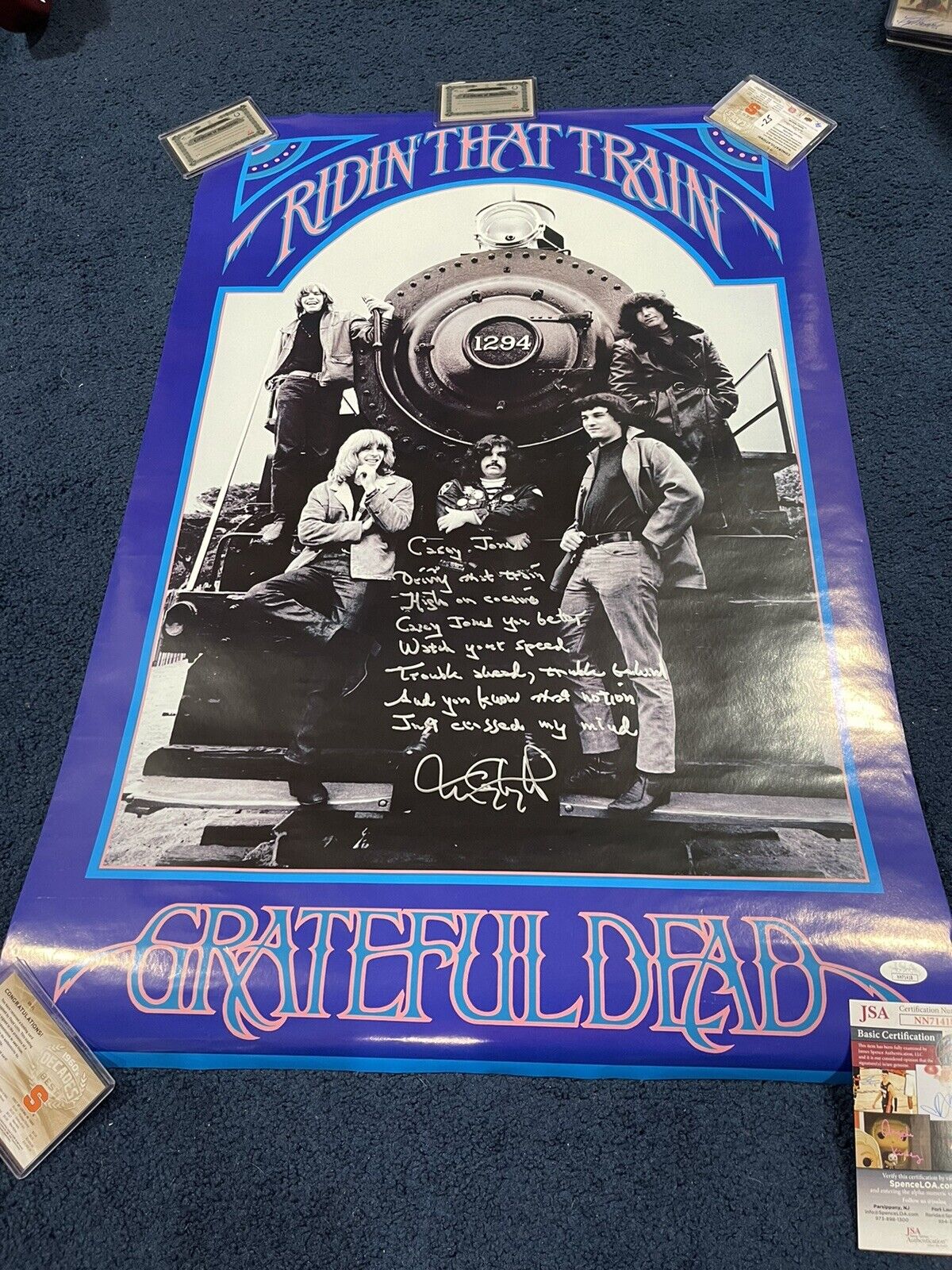 TOM CONSTANTEN SIGNED AUTOGRAPHED GRATEFUL DEAD CASEY JONES POSTER W/ LYRICS JSA COLLECTIBLE MEMORABILIA