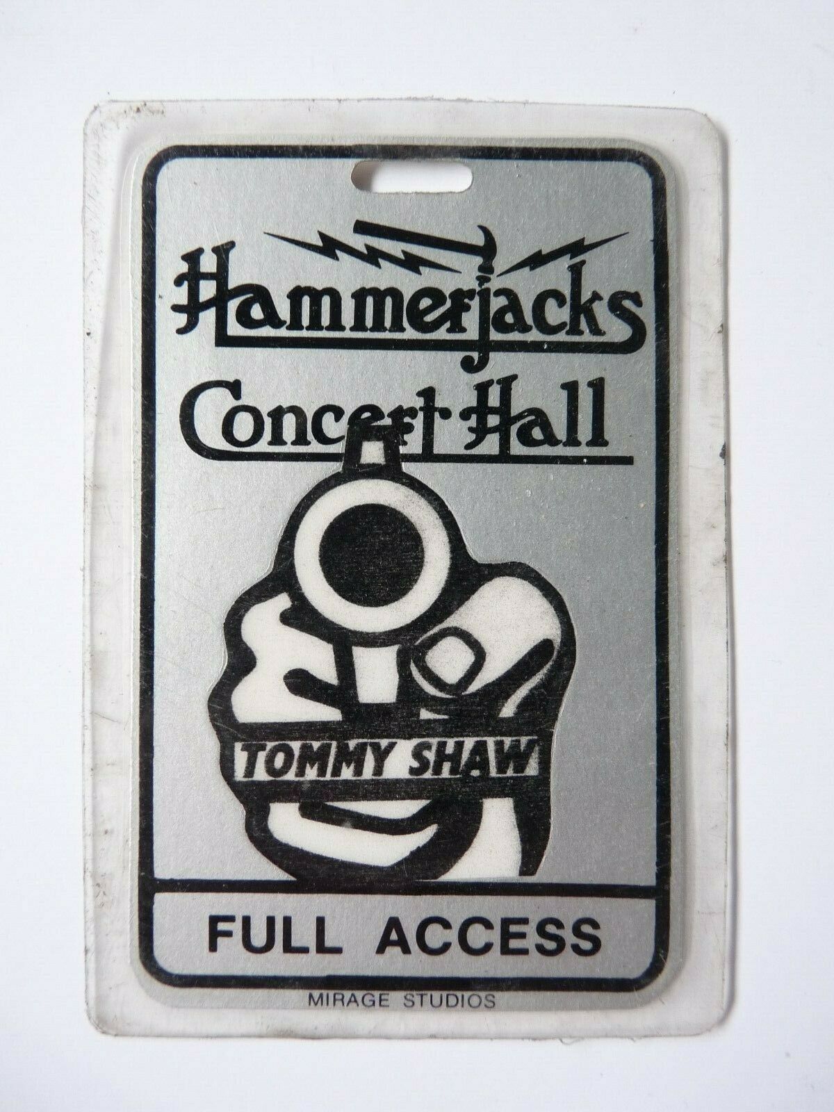 TOMMY SHAW 1980S HAMMERJACKS TOUR CONCERT ISSUED USED BACKSTAGE PASS LAMINATE COLLECTIBLE MEMORABILIA