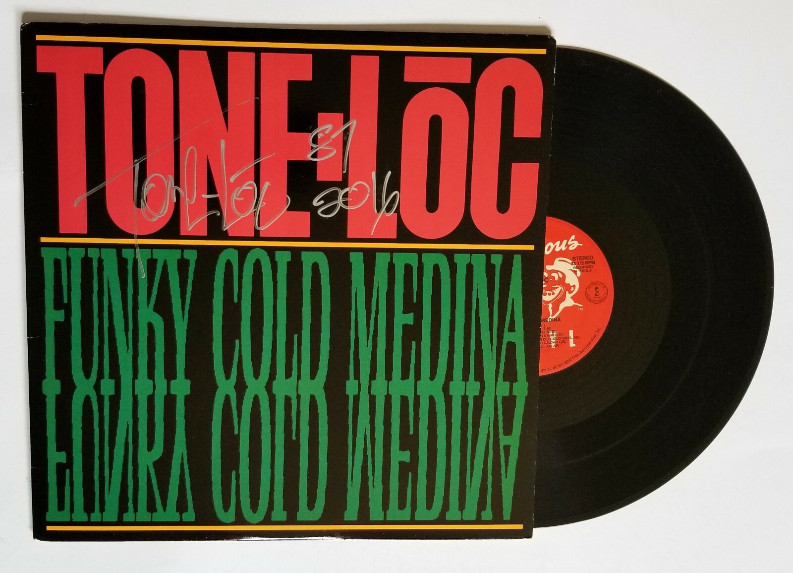 TONE LOC RAPPER REAL HAND SIGNED FUNKY COLD MEDIA VINYL SINGLE COA AUTOGRAPHED COLLECTIBLE MEMORABILIA