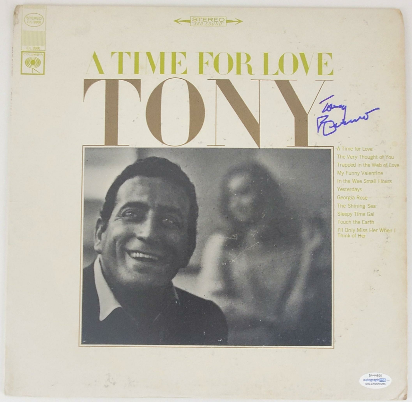 TONY BENNETT “A TIME FOR LOVE” AUTOGRAPH SIGNED LP ALBUM ACOA COLLECTIBLE MEMORABILIA
