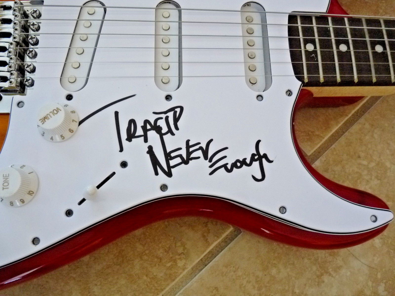 TRACII L.A. GUNS SIGNED AUTOGRAPHED GUITAR NEVER ENOUGH LYRICS PSA BAS GUARANTEE COLLECTIBLE MEMORABILIA