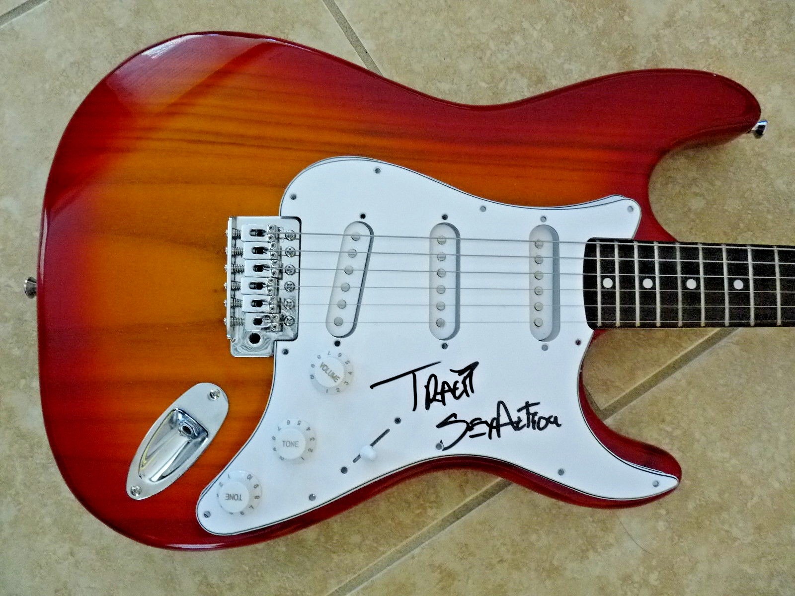 This hand-signed guitar is verified 100% genuine by professional authenticators and includes a Certificate of Authenticity card. A numbered tamper-proof hologram is attached to the item so you can verify its authenticity on our website at your convenience.