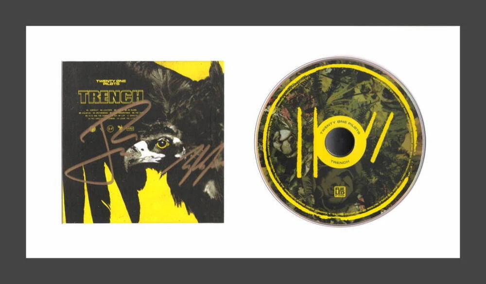 TWENTY ONE PILOTS SIGNED AUTOGRAPH TRENCH FRAMED CD DISPLAY – RARE! W/ JSA COA COLLECTIBLE MEMORABILIA