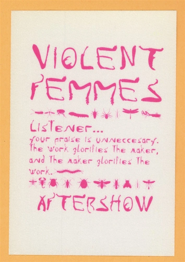 VIOLENT FEMMES 1998 CONCERT TOUR AFTER SHOW BACKSTAGE PASS COLLECTIBLE MEMORABILIA