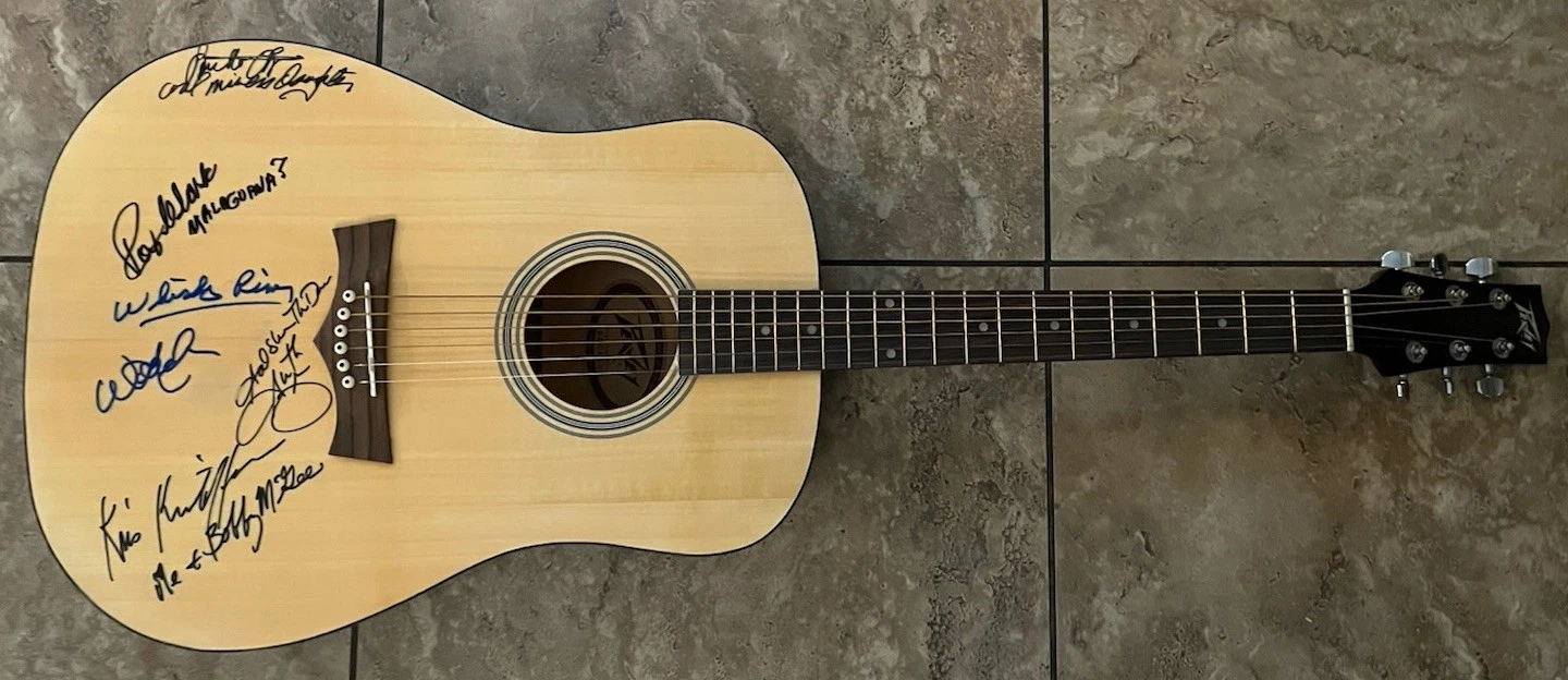 WILLIE NELSON LORETTA LYNN GARTH BROOKS +2 SIGNED GUITAR BAS GUARANTEED COLLECTIBLE MEMORABILIA