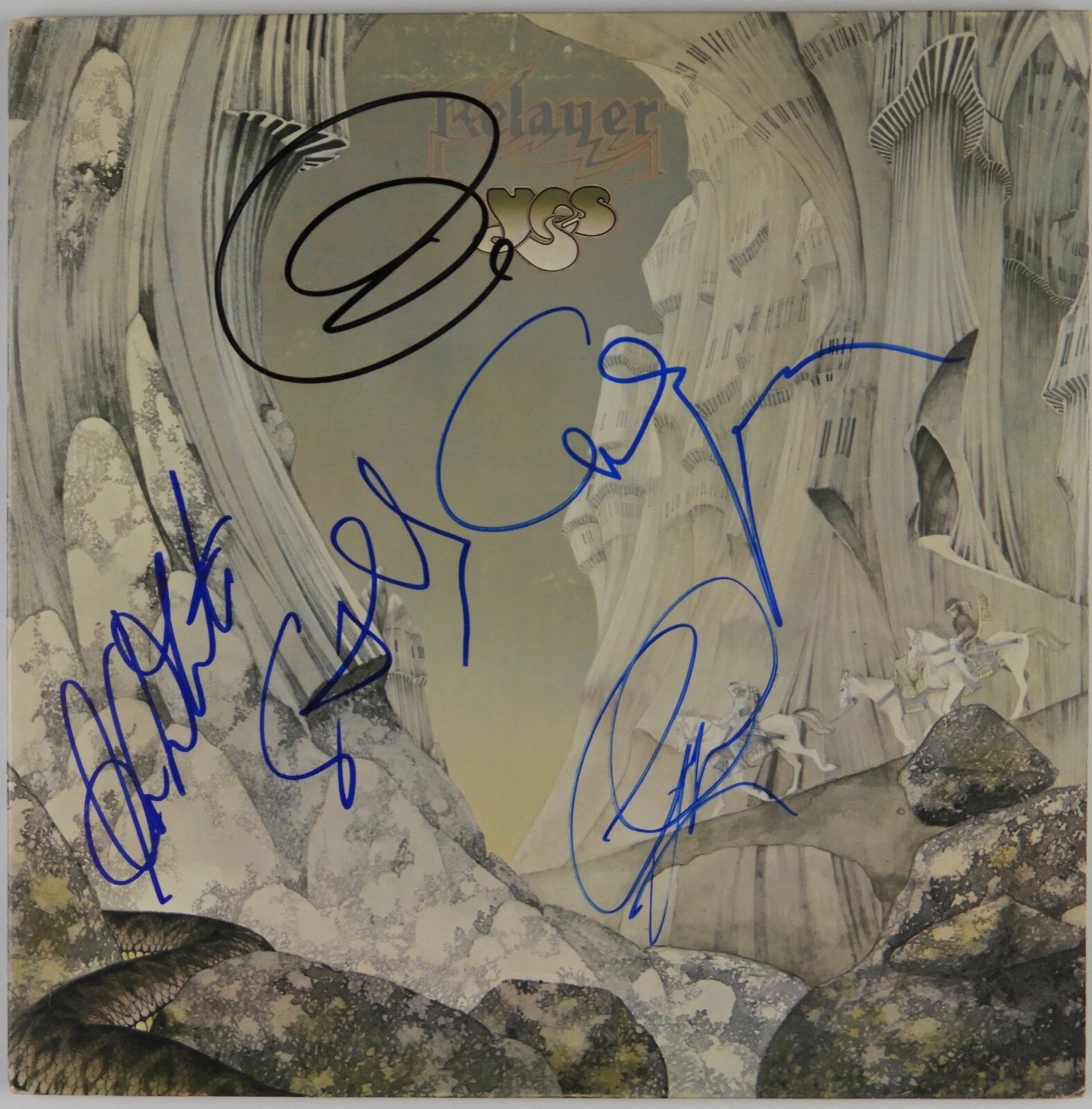 YES JSA SIGNED AUTOGRAPH ALBUM RECORD VINYL JON ANDERSON CHRIS SQUIER RELAYER COLLECTIBLE MEMORABILIA