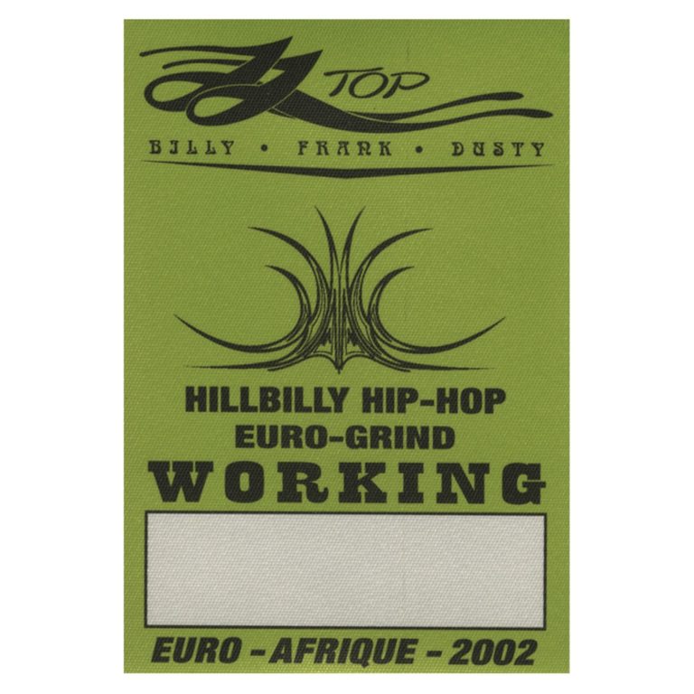 ZZ TOP 2002 HILLBILLY HIP HOP CONCERT TOUR WORKING BACKSTAGE PASS COLLECTIBLE MEMORABILIA