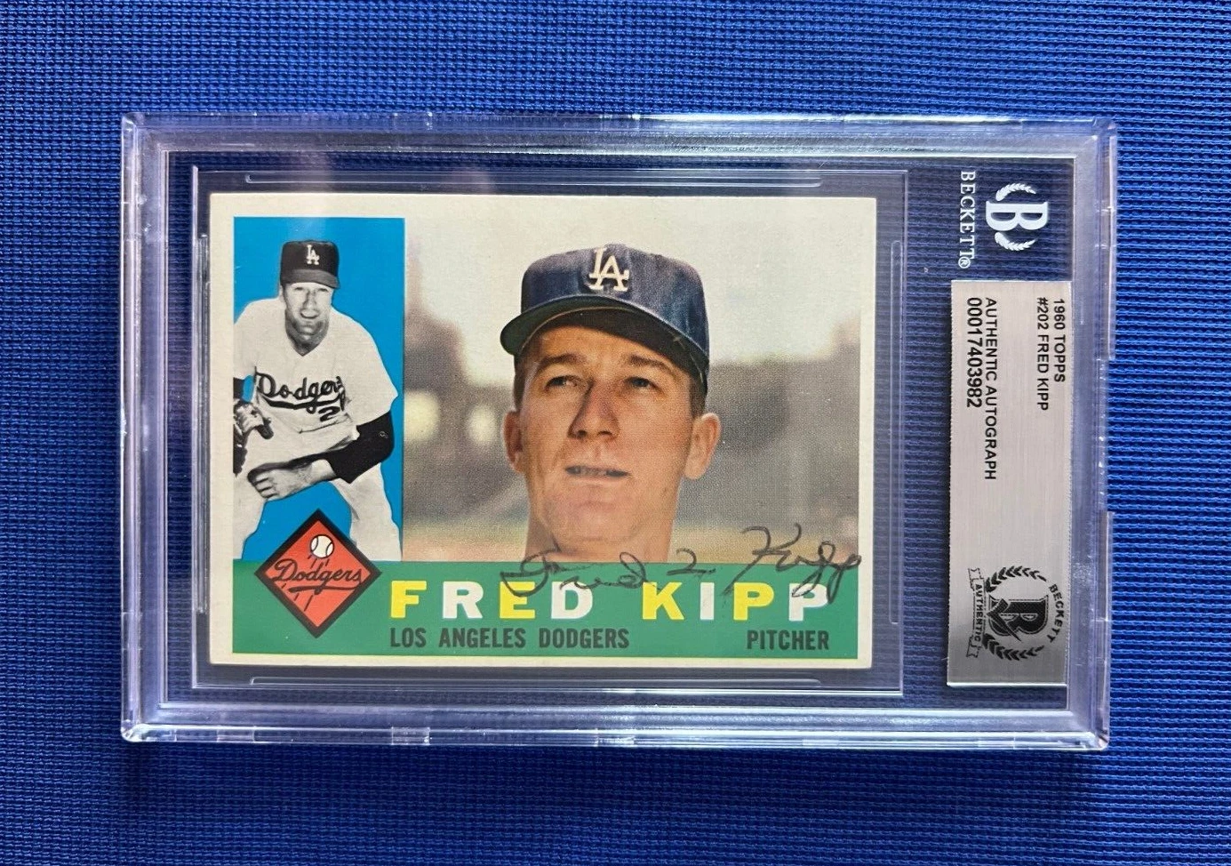 1960 TOPPS FRED KIPP LA DODGERS SIGNED AUTOGRAPHED CARD #202 BECKETT COLLECTIBLE MEMORABILIA