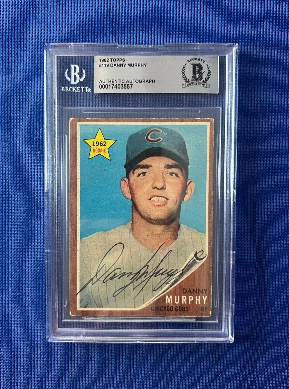 1962 TOPPS DANNY MURPHY CUBS RC ROOKIE SIGNED AUTOGRAPHED CARD #119 BECKETT * COLLECTIBLE MEMORABILIA