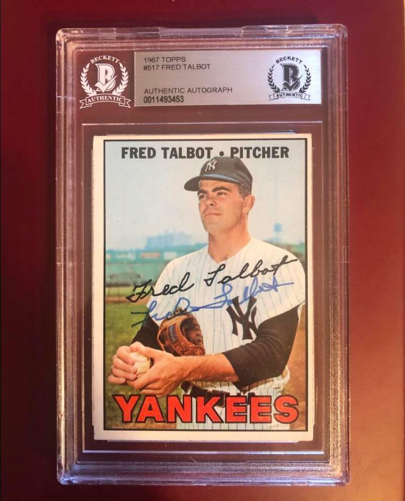 1967 TOPPS FRED TALBOT #517 YANKEES SIGNED CARD BECKETT AUTHENTIC AUTO VINTAGE COLLECTIBLE MEMORABILIA