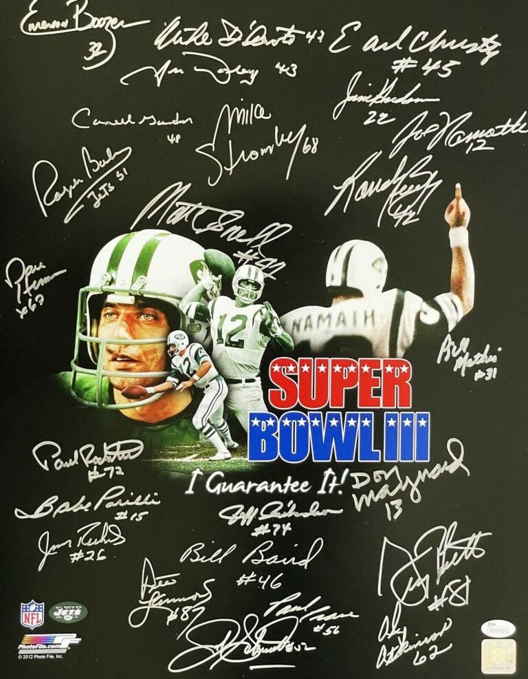 1969 NEW YORK JETS TEAM SIGNED 16X20 JSA COA WP200871 X SUPER BOWL III COLLECTIBLE MEMORABILIA