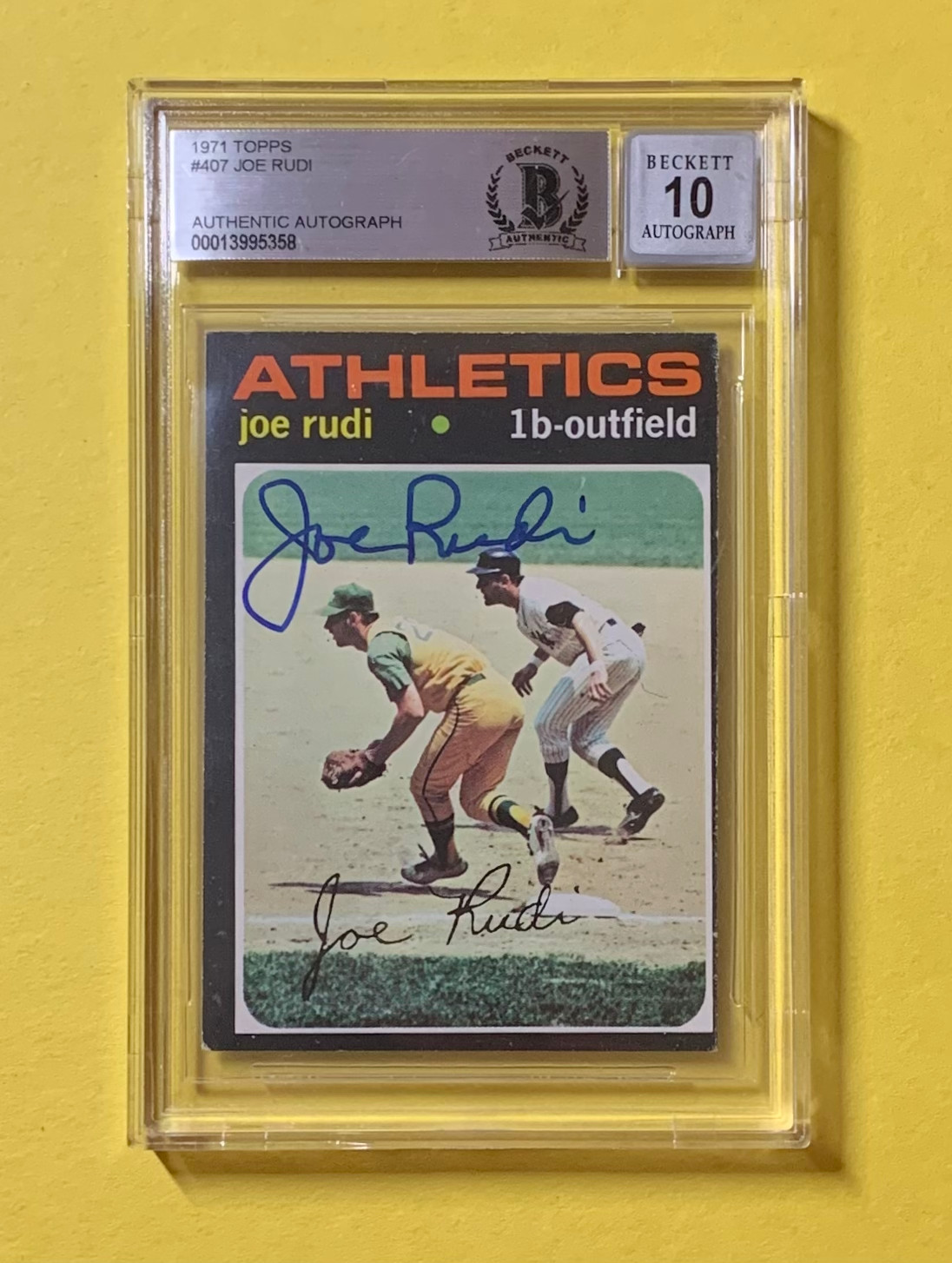 1971 TOPPS JOE RUDI #407 AUTHENTIC AUTO BECKETT CERTIFIED 10 ATHLETICS COLLECTIBLE MEMORABILIA