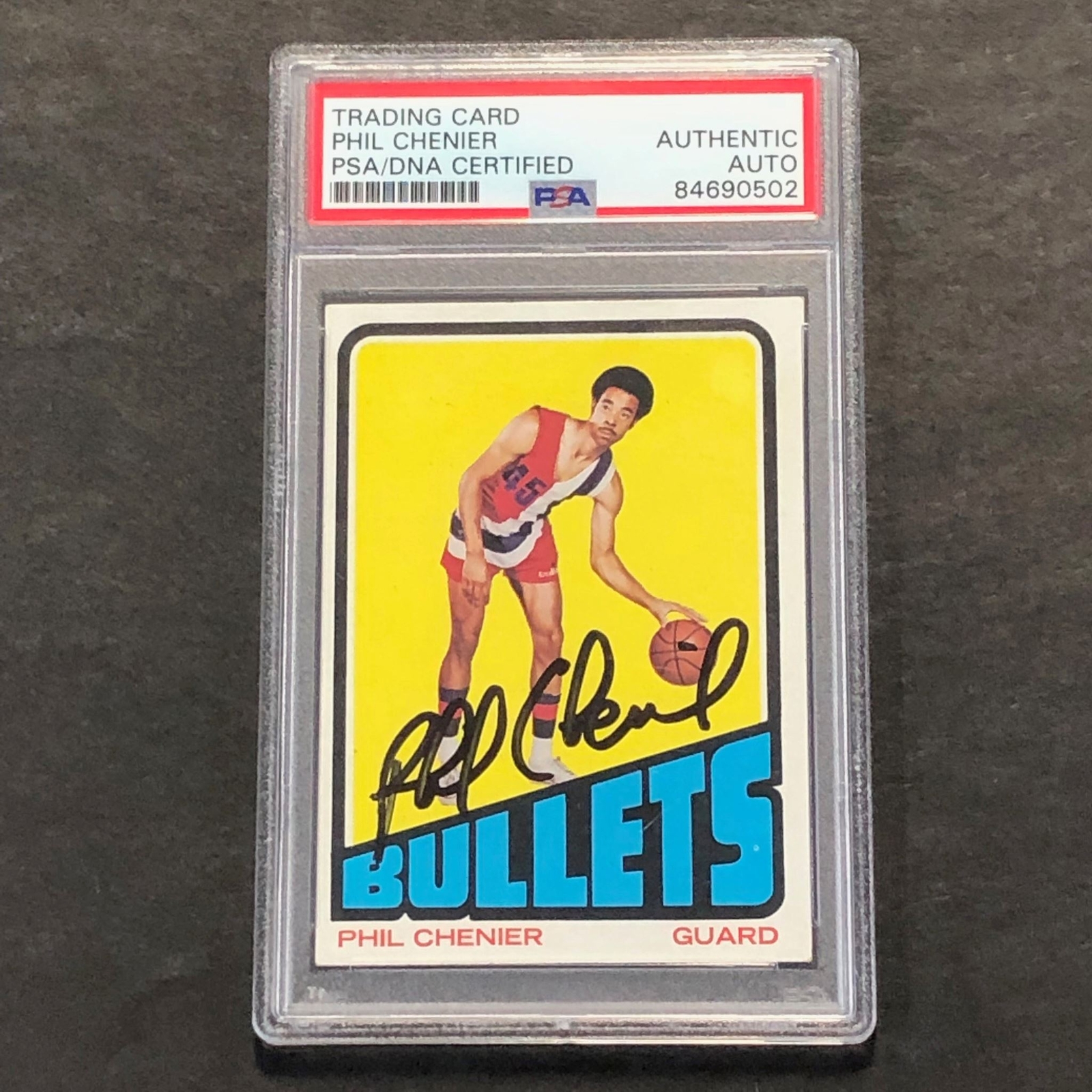 1972-73 BASKETBALL CARD #102 PHIL CHENIER SIGNED CARD AUTO PSA SLABBED BULLETS COLLECTIBLE MEMORABILIA