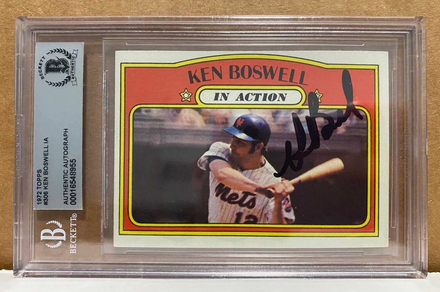 1972 TOPPS KEN BOSWELL METS IN ACTION SIGNED AUTOGRAPHED #306 CARD BECKETT AUTH COLLECTIBLE MEMORABILIA