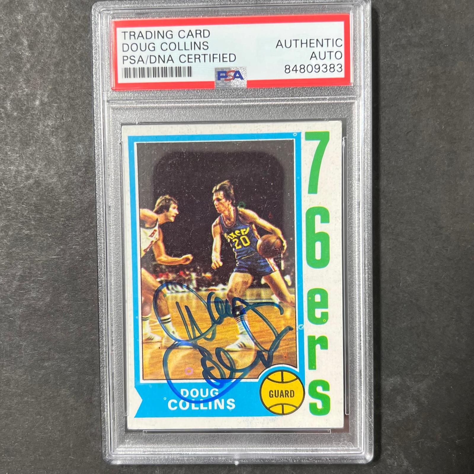1973-74 NBA #129 DOUG COLLINS SIGNED CARD BECKETT SLABBED 76ERS COLLECTIBLE MEMORABILIA