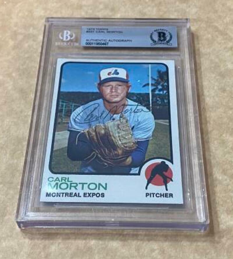 1973 TOPPS CARL MORTON #331 EXPOS SIGNED CARD BECKETT AUTHENTIC AUTO VINTAGE COLLECTIBLE MEMORABILIA