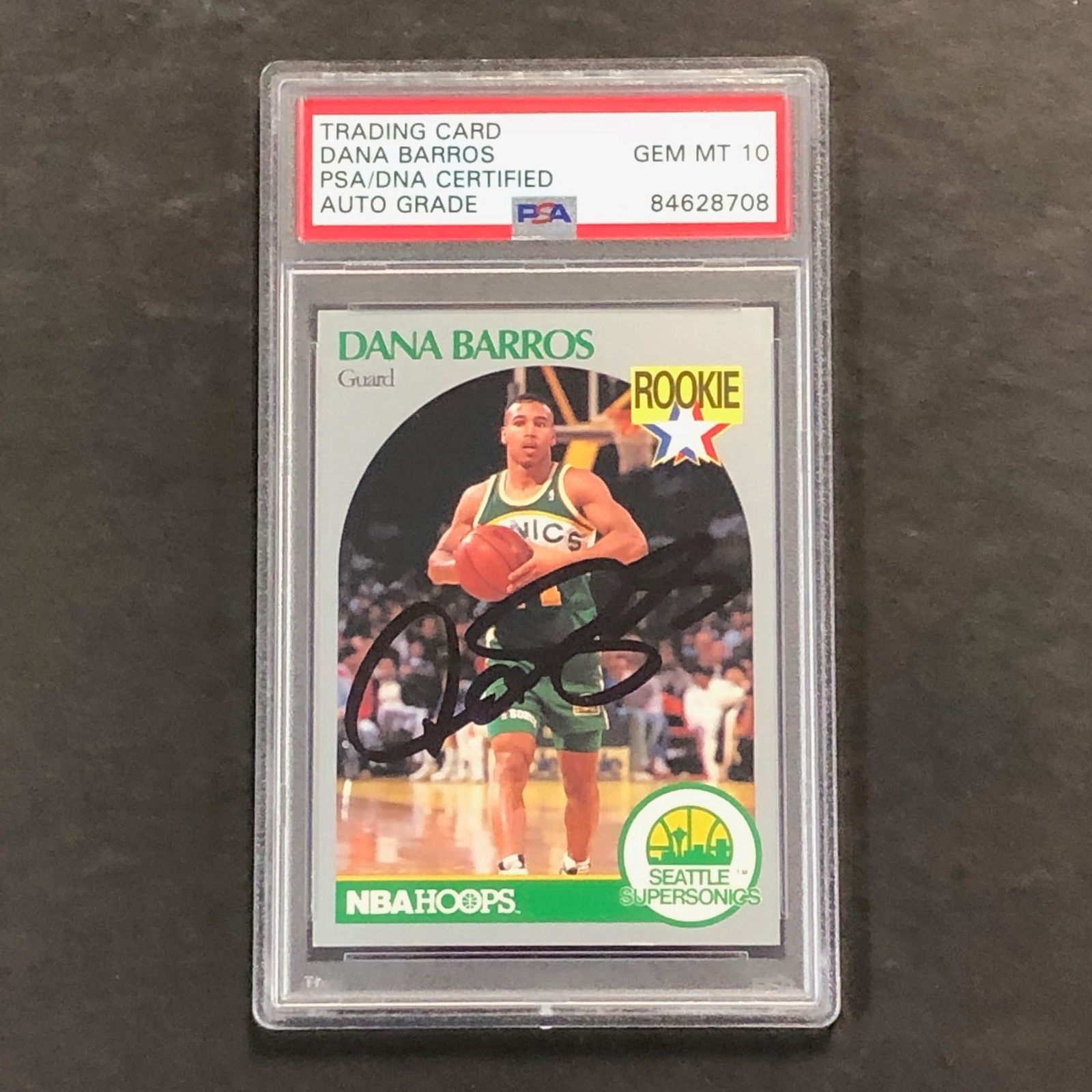 1990 NBA HOOPS #274 DANA BARROS SIGNED CARD AUTO PSA/DNA SLABBED SUPERSONICS COLLECTIBLE MEMORABILIA