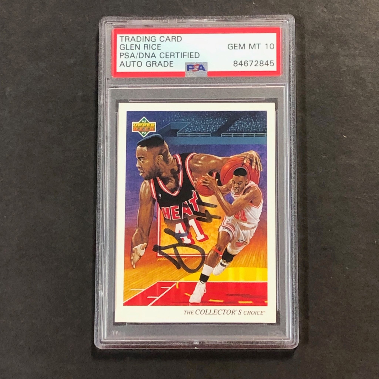 1992-93 UPPER DECK COLLECTOR’S CHOICE #42 GLEN RICE SIGNED CARD AUTO 10 PSA SLAB COLLECTIBLE MEMORABILIA