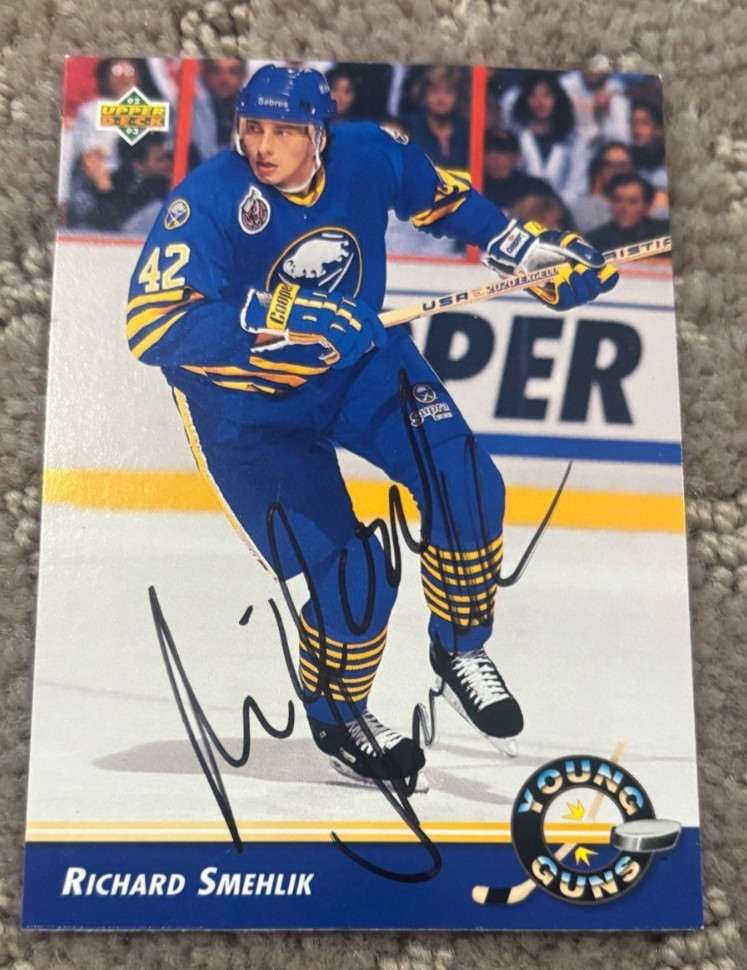 1992-93 UPPER DECK RICHARD SMEHLIK SIGNED AUTOGRAPHED CARD #564 YOUNG GUNS RC COLLECTIBLE MEMORABILIA