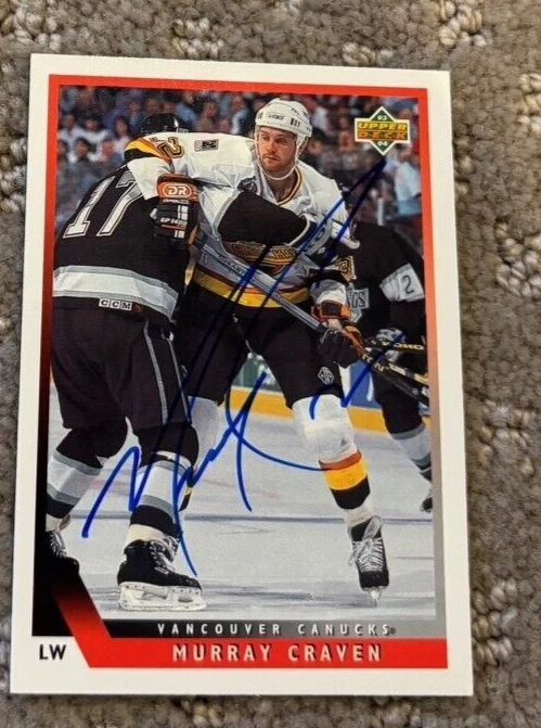 1993-94 UPPER DECK #410 MURRAY CRAVEN SIGNED AUTOGRAPHED CARD VANCOUVER CANUCKS COLLECTIBLE MEMORABILIA