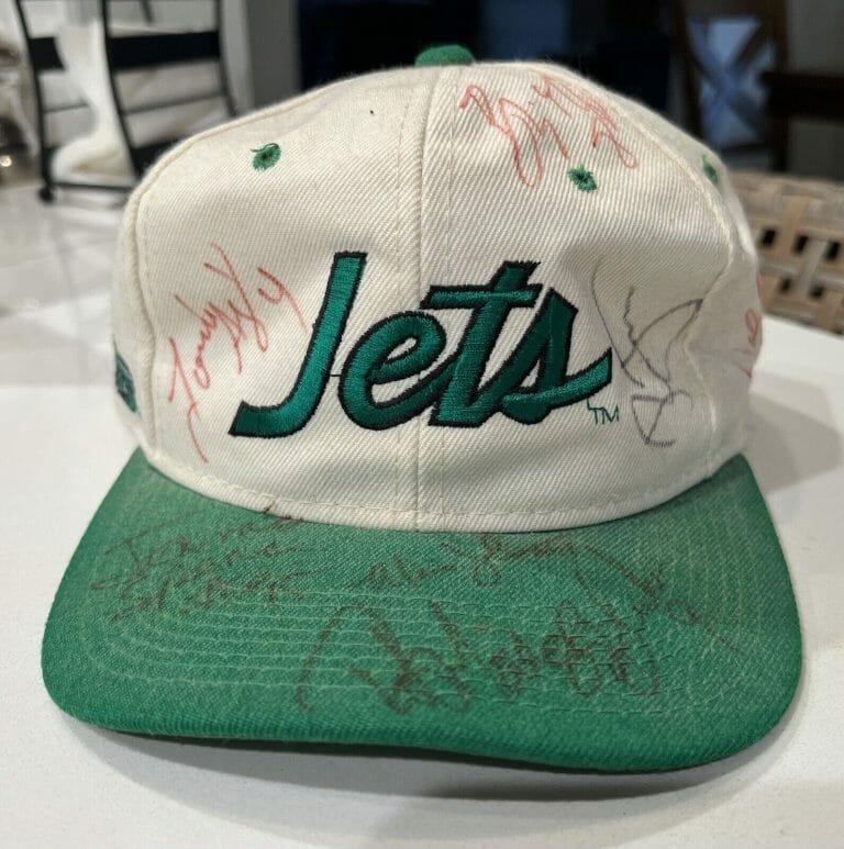 1993 NY JETS SIGNED AUTOGRAPHED HAT BY 9 RONNIE LOTT NAGLE MOORE BLAKE DAWKINS + COLLECTIBLE MEMORABILIA