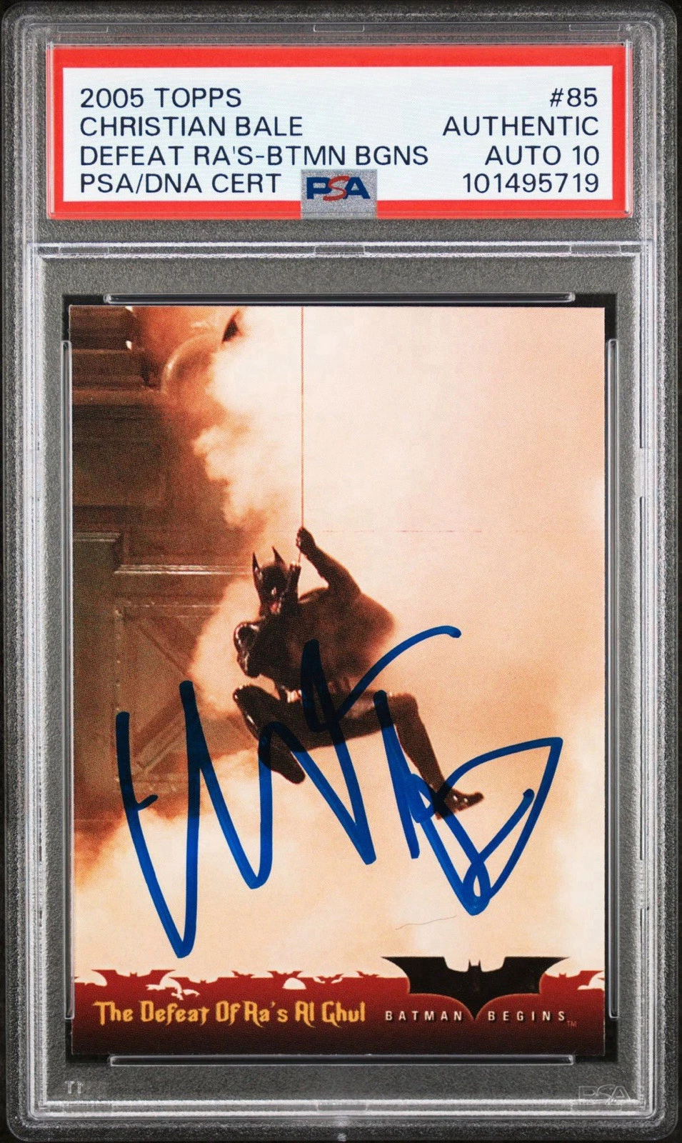 2005 TOPPS BATMAN BEGINS #85 CHRISTIAN BALE DEFEAT ROOKIE CARD PSA GEM 10 AUTO COLLECTIBLE MEMORABILIA
