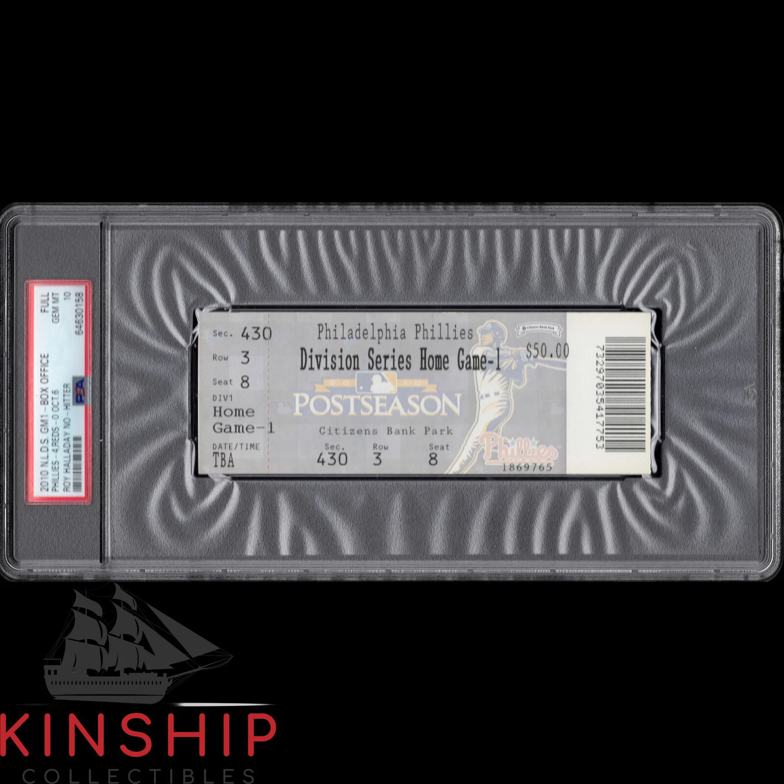 2010 NLDS GAME 1 BOX OFFICE TICKET PSA 10 SLABBED ROY HALLADAY NO HITTER C1187 COLLECTIBLE MEMORABILIA