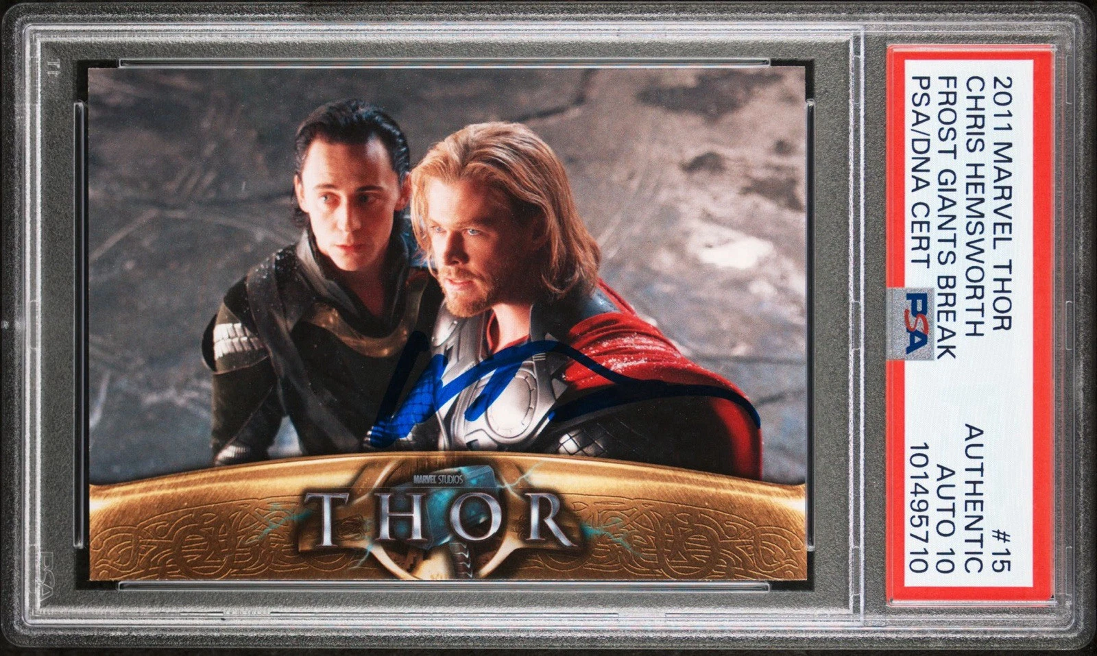 2011 MARVEL THOR #15 CHRIS HEMSWORTH FROST GIANTS BREAK ROOKIE PSA GEM 10 AUTO COLLECTIBLE MEMORABILIA