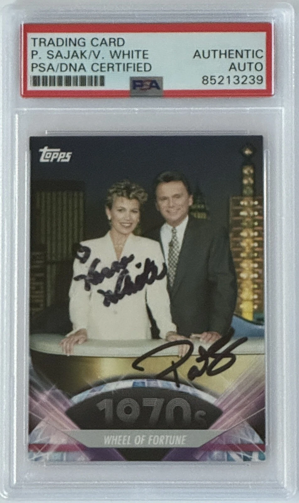 2011 TOPPS AMERICAN PIE WHEEL FORTUNE PAT SAJAK & VANNA WHITE SIGNED PSA DNA COA COLLECTIBLE MEMORABILIA