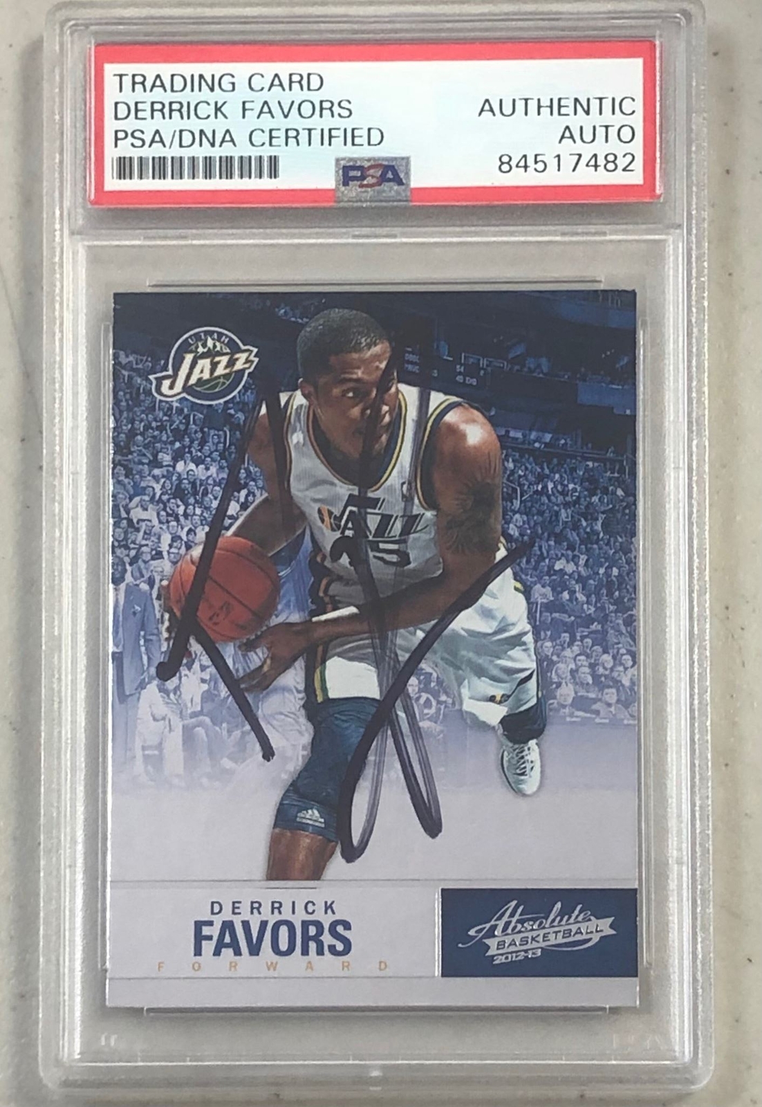 2012-13 ABSOLUTE BASKETBALL #18 DERRICK FAVORS SIGNED CARD AUTO PSA SLABBED JAZZ COLLECTIBLE MEMORABILIA