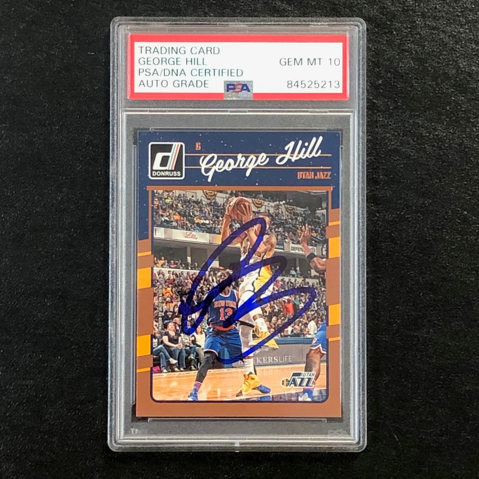 2016-17 DONRUSS BASKETBALL #51 GEORGE HILL SIGNED CARD AUTO 10 PSA SLABBED JAZZ COLLECTIBLE MEMORABILIA