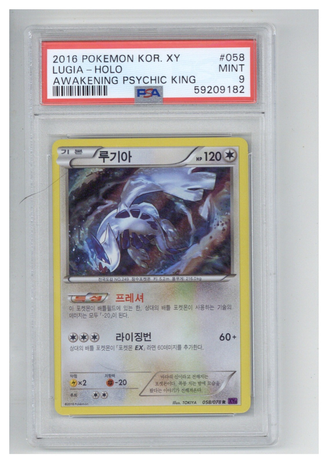 2016 POKEMON KOREAN AWAKENING PSYCHIC KING LUGIA HOLO PSA 9 COLLECTIBLE MEMORABILIA