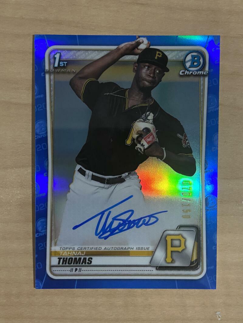 2020 BOWMAN CHROME AUTO TAHNAJ THOMAS 1ST BOWMAN BLUE REFRACTOR PIRATES /150 COLLECTIBLE MEMORABILIA