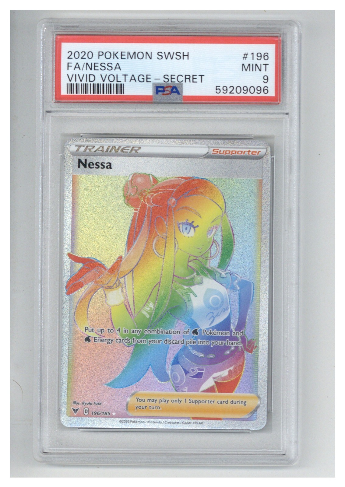 2020 POKEMON SWORD & SHIELD VIVID VOLTAGE SECRET #196 FULL ART/NESSA PSA 9 COLLECTIBLE MEMORABILIA